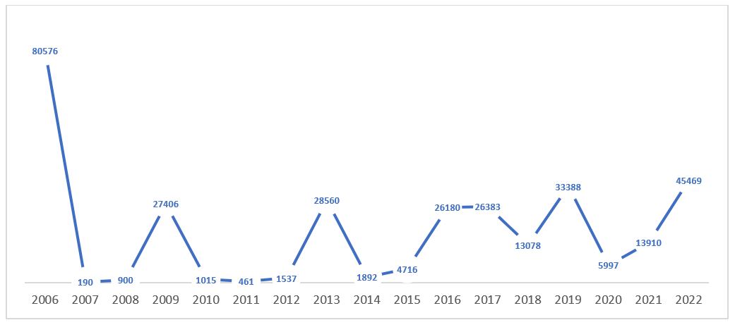 Ilustración 1. Histórico de vacantes ofertadas CNSC 2006-2021