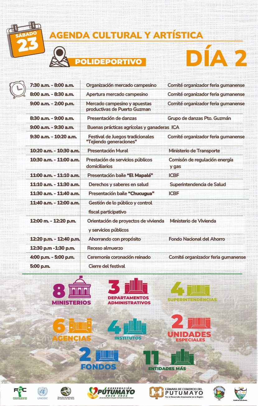 - Cuarenta entidades públicas se comprometieron con el cambio y estarán el 22 y 23 de septiembre en “Juntémonos, el fesival para tejer lo público”, que se llevará a cabo en Puerto Guzmán, Putumayo, para tejer confianza entre las ciudadanías diversas y el Estado.