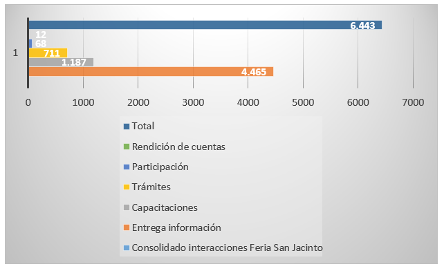 Entre el 11 y 13 de agosto se lograron 6.443 interacciones con los ciudadanos, de las cuales, 4.465 correspondieron a entregas de información, 1.187 a capacitaciones de las diferentes entidades participantes en la Feria, 711 interacciones para la gestión de trámites y presentaron 80 interacciones relacionadas con espacios de participación ciudadana (ver cuadro).
