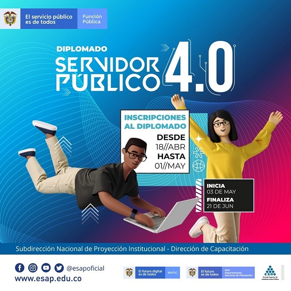 El Diplomado Servidor Público 4.0 finalizará el 21 de junio y la ESAP certificará la participación con el 80 % de las actividades realizadas.