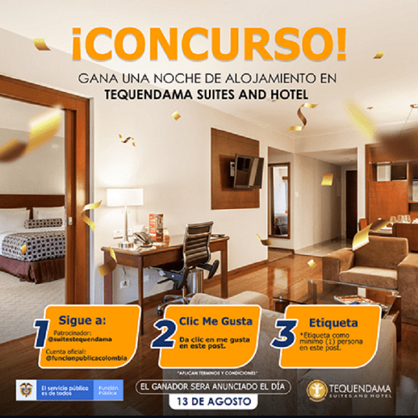 Para concursar el primer paso es seguir en Instagram la cuenta de @suitestequendama y dar like al post del concurso. También debes seguir la cuenta de @funcionpublicacolombia.