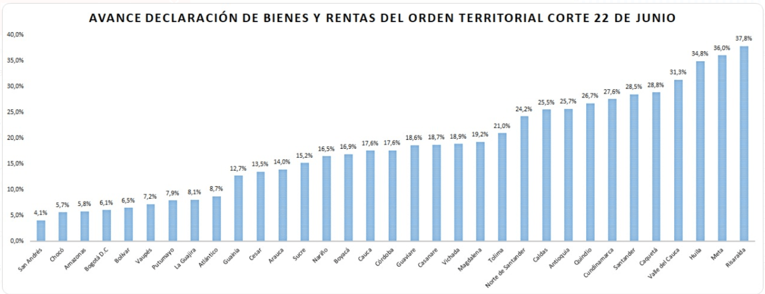 Risaralda, Huila y Meta registran el mayor avance en declaraciones de bienes y rentas