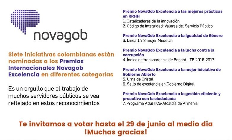 Siete iniciativas colombianas están nominadas a los Premios Internacionales Novagob Excelencia en diferentes categorías