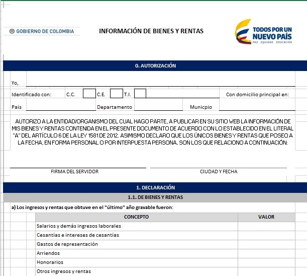 La publicación de este formato es señal de compromiso con la transparencia de los directivos del Gobierno Nacional.