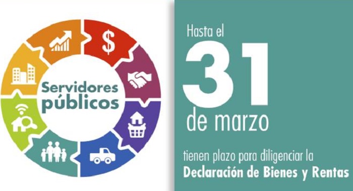 Bogotá, miércoles 2 de marzo de 2016. Con el propósito de facilitar el proceso de actualización de la Declaración de Bienes y Rentas, Función Pública expidió la Circular Externa No 100-07-2016 del 1 de marzo de 2016, mediante la cual se establecen distintos plazos a las entidades de cada sector administrativo del nivel central para que diligencien esta información, cuya fecha límite para ser reportada vence el jueves 31 de marzo.