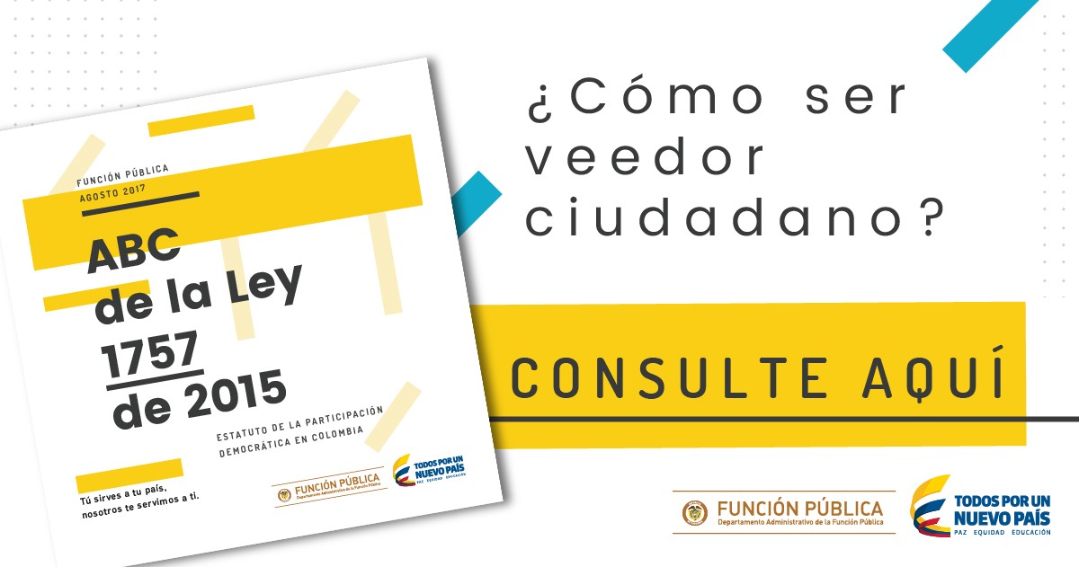 Bogotá, miércoles 16 de agosto de 2017. Con el fin de aportar una herramienta que permita promover y consolidar la participación ciudadana en Colombia, Función Pública pone a disposición de la administración pública, los ciudadanos y las organizaciones de la sociedad civil en general, el ABC de la Ley 1757 de 2015, más conocida como Estatuto de la Participación Democrática.