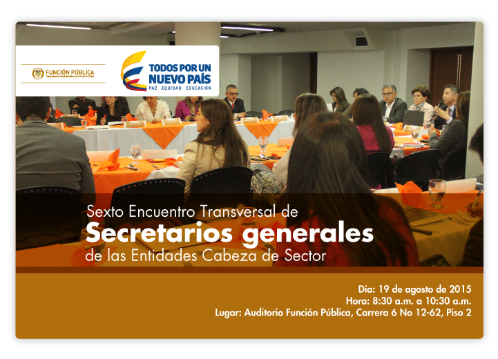 La Función Pública realizará mañana miércoles 19 de agosto a partir de las 8:30 am el Sexto Encuentro Transversal de Secretarios Generales, reunión que convoca a los líderes de estas áreas, de las 24 entidades cabeza de sector de la rama ejecutiva del orden nacional.