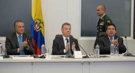 Al intervenir en el evento, el Presidente Santos recordó que con el proceso de paz con las Farc el país está en un momento de transición, en el que las cifras de seguridad van mejorando de forma importante, como lo demuestra el hecho de que hoy tengamos la cifra de homicidios en 24 por cada cien mil habitantes, que es la más baja de los últimos 42 años. |