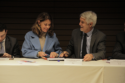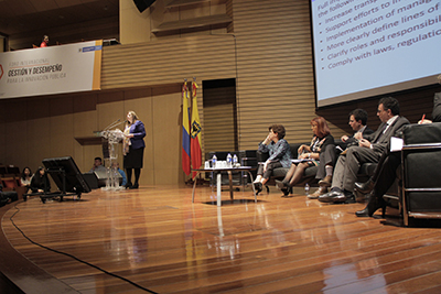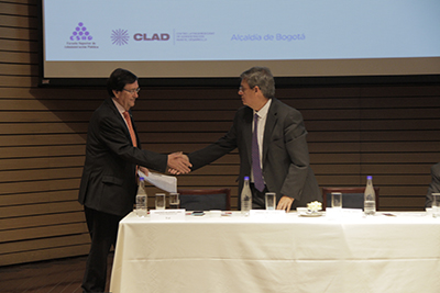 Marta Lucía Ramírez Vicepresidente de la República Enrique Peñalosa Alcalde Mayor de Bogotá Carlos Felipe Córdoba Contralor General de la República Fernando Antonio Grillo Director del Departamento Administrativo de la Función Pública Alberto Scavarelli Director de la Oficina Nacional de Servicio Civil de Uruguay y Presidente del Centro Latinoamericano de Administración para el Desarrollo-CLAD Francisco Velázquez Secretario General del CLAD Pedro Medellín Torres Director de la Escuela Superior de Administración Pública-ESAP |