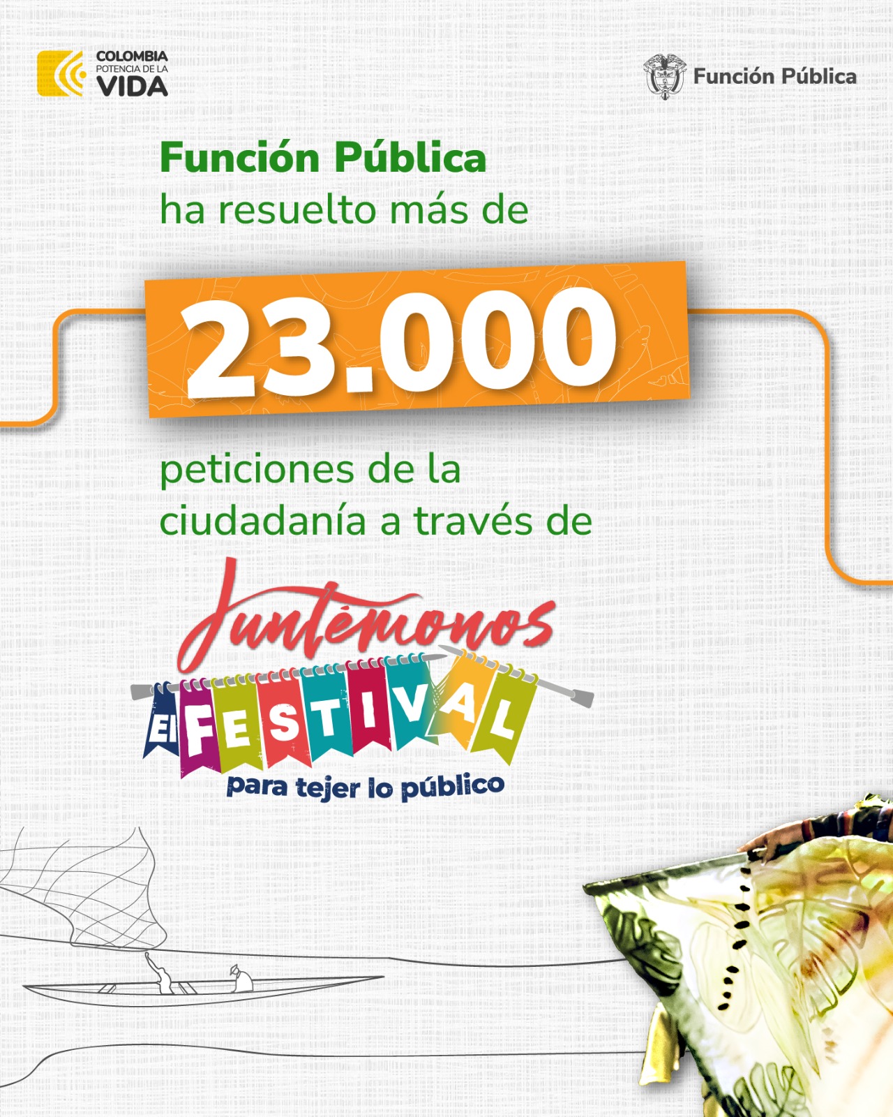 Conoce nuestro festival a través de la mirada de las propias comunidades asistentes, nos cuentan cómo esta iniciativa de Función Pública les permitió acerarse al Estado y conocer el servicio que les pueden prestar las 42 entidades que hicieron parte de este Festival Juntémonos.¡Seguimos tejiendo lo público !